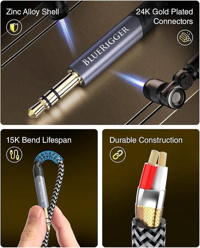 UTLRA DURABLE & TANGLE FREE: BlueRigger TPE Aux cord is flexible recyclable and has a 10 000+ bend lifespan. Compared to nylon braided jack cable this type of material is light weight and easy to use with headphones??