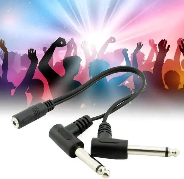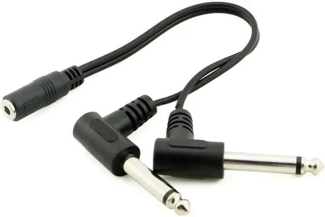 • 1Pcs 3.5mm Mini 1/8 inch TRS Stereo Female Jack to Dual 1/4 6.35mm Male Plug Mono TS Right Angle Audio Adapter Y Splitter Cable