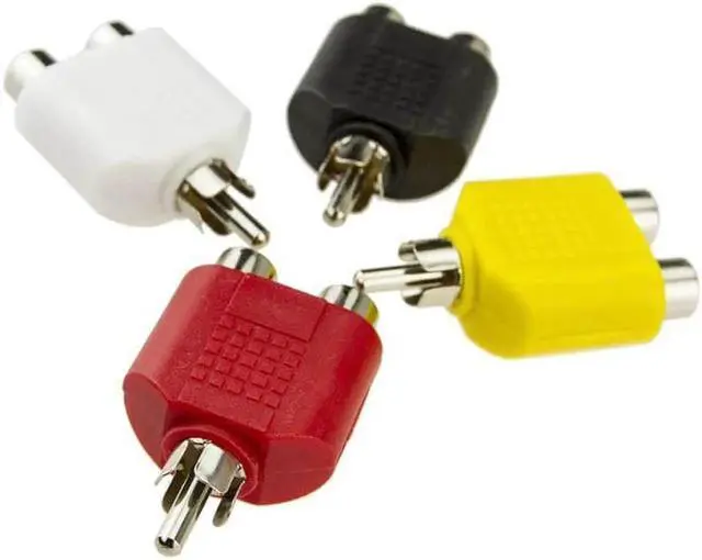 4Pcs RCA Y Splitter AV Audio Video Plug Converter 1 Male to 2 Female Adapter Kit Lotus Color AV Jack RCA Plug To Double