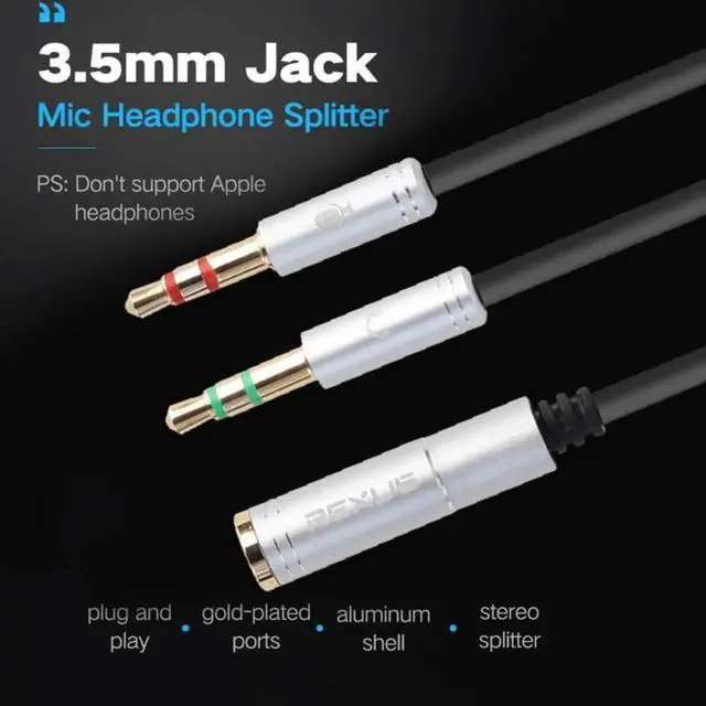 1Pcs 3.5mm Female to 2 Male Splitter Headphone for Computer 3.5mm Mic Audio Y Splitter Cable Headset to PC Adapter