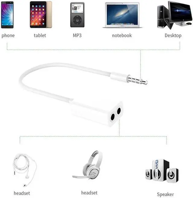 Type: 3.5 mm 1 male to 2 female audio cable