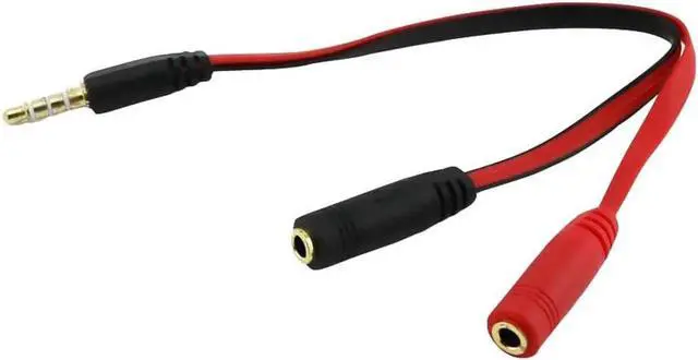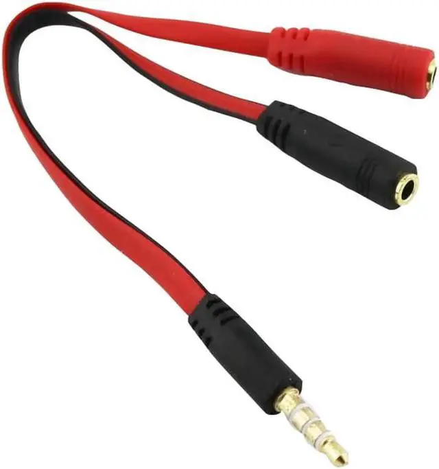 1Pcs 1x 3.5mm 1/8" 4 Pole 3 Ring Male Plug To 2x3.5mm Female Jack TRRS AUX Audio Y Splitter Adapter Flat Cable Cord 20cm