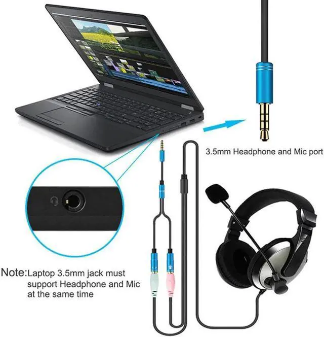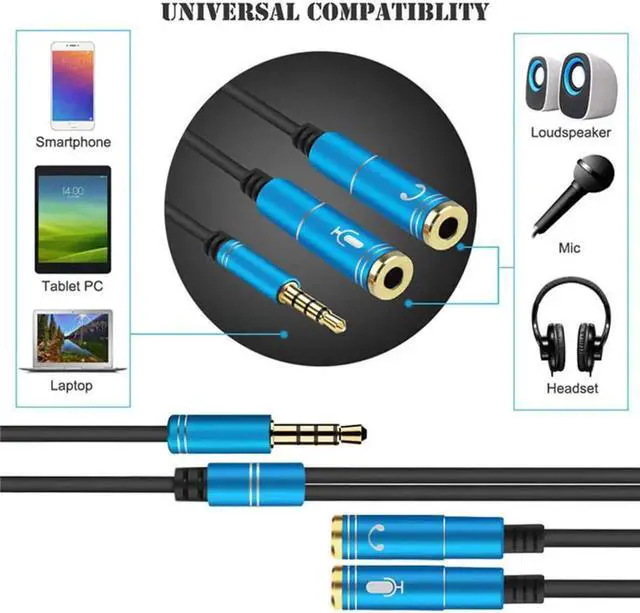 • 1Pcs Acekool Universal 2 in 1 3.5mm Stereo Audio Male to 2 Female Headset Mic Y Splitter Cable Adapter Connector for Mobile phone r15