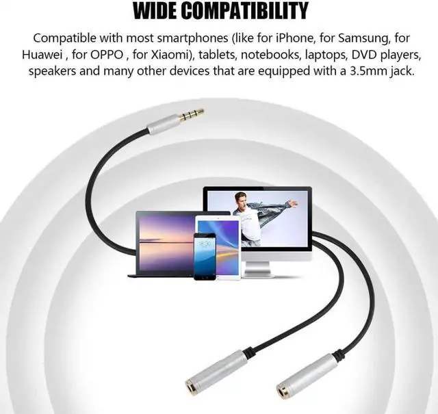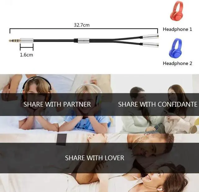 • 1Pcs black 3.5mm 1 Male to 2 Female Jack Y Splitter Headphone Audio Cable Adapter for Cellphones