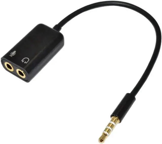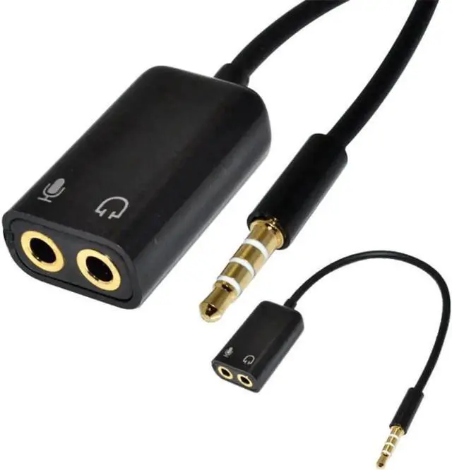 • 1Pcs 3.5mm Stereo Splitter Audio Male to Earphone Headset + Microphone Adapter Cable Black