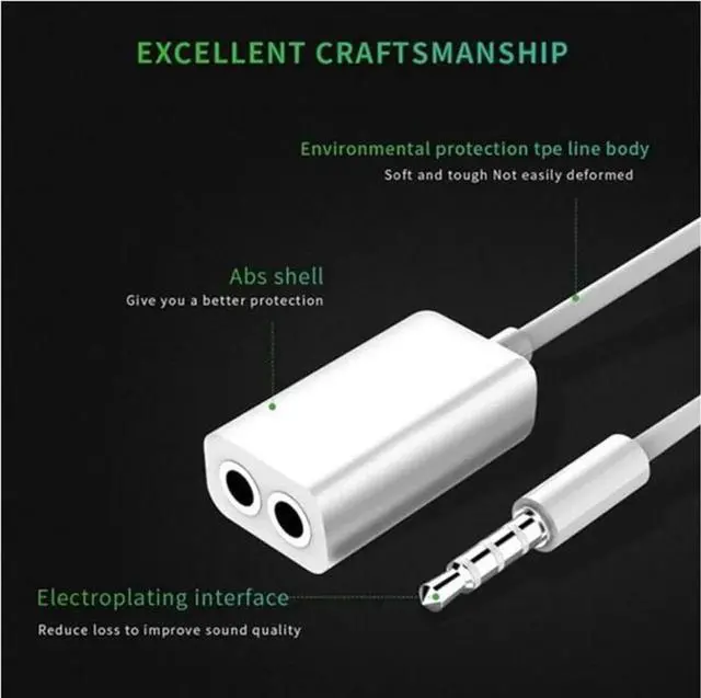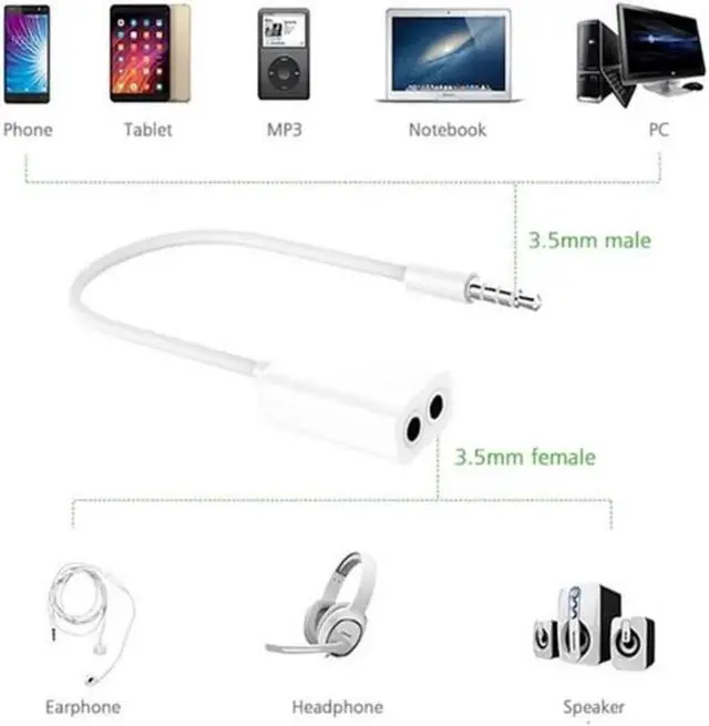 • 1Pcs 3.5mm Jack Earphone Splitter Cable 1 Male to 2 Female headphone Audio Splitter Adapter for MP3 Mobile Phone Tablet Computer Note