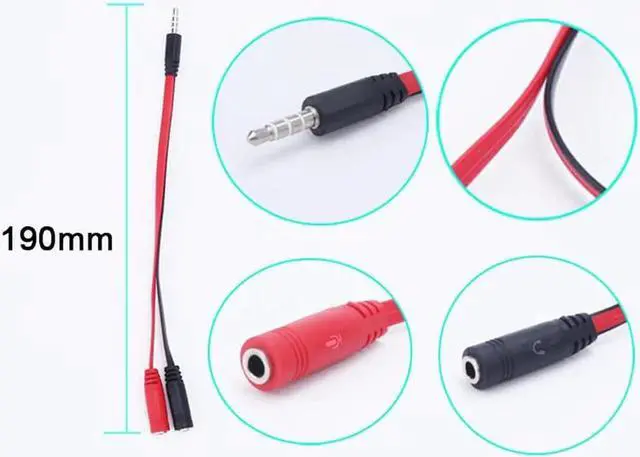 • 1Pcs 200mm 3.5mm Male to 2 Female Jack Audio Y Splitter Cable Earphone Headset Headphone Microphone Adapter For Phone PC Laptop