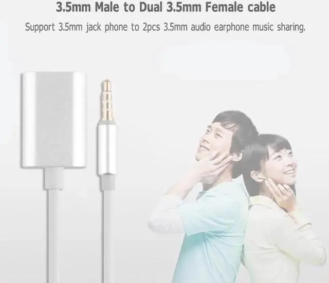 1Pcs 3.5mm TRRS Male to Dual 3.5mm Female Stereo Audio Earphone Splitter Adapter