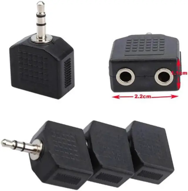 Color: Black Brand Name: ALLOYSEED Size: As show Item Type: Adapter Material: Plastic Package: No Input:: One 3.5 mm Male Plug Output:: Two 3.5 mm Female Jack Model number: 5401