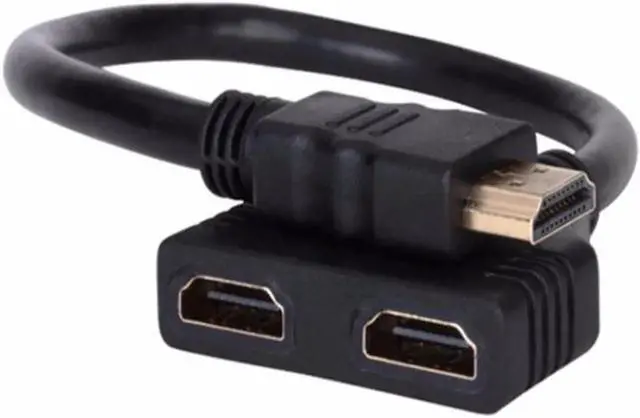 • 1Pcs HDMI 2 Dual Port Y Splitter 1080P HDMI v1.4 Male to Double Female Adapter Cable 1 In 2 Out HDMI Converter Connect Cable Cord