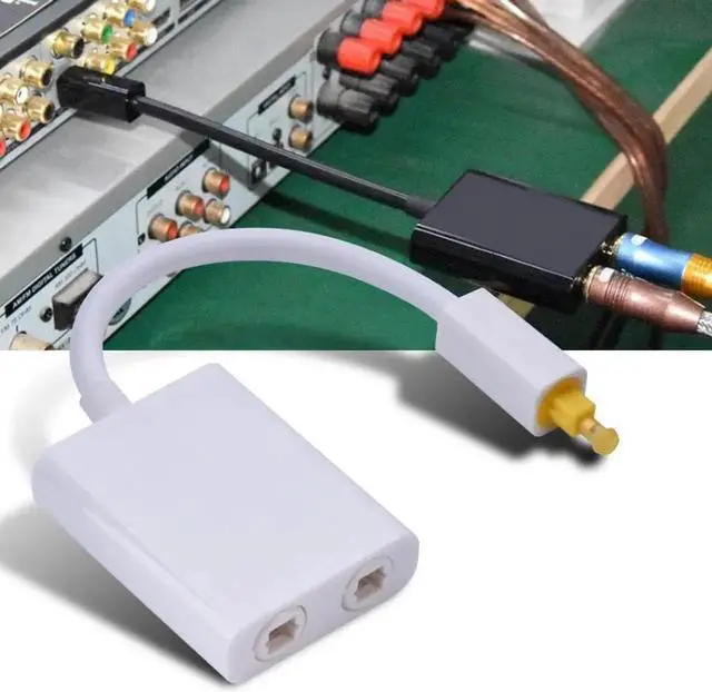 • 1Pcs Dual Port Toslink Digital Optical Audio Splitter Adapter Audio Cable 1 in 2 out