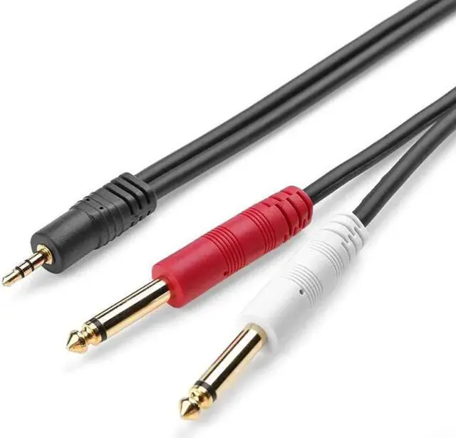 1Pcs 3.5mm to Dual 6.35mm Splitter Adapter Audio Cable for Amplifier Speaker