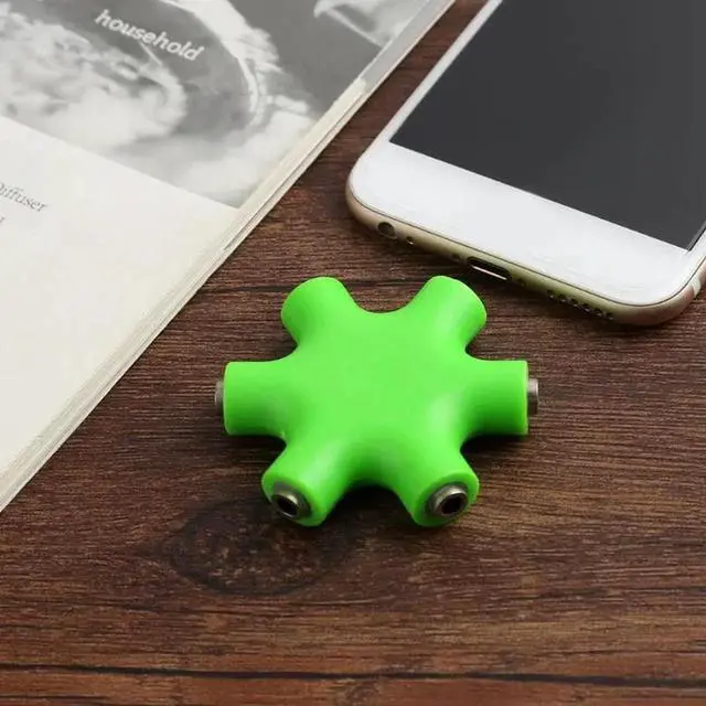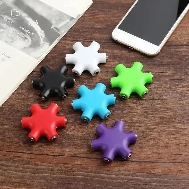 1Pcs 3.5mm Jack 6 Way Multi Port Hub Aux Headphone Splitter Audio Cable Adapter
