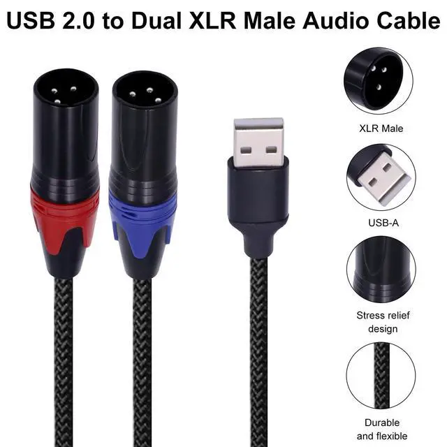 USB A to Dual XLR Audio CableUsed to convert the USB A interface of mobile phones and computers into XLR Male stereo output, and connect to power amplifiers, active speakers, mixers and other equipment.