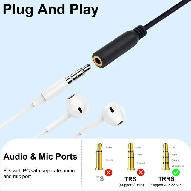 • [USB C to 3.5mm Microphone Adapter]Connects a microphone or speaker with a 3.5mm TRRS (4-Port) male output jack directly to a device with a standard USB Type-C device. Note: Audio splitter, NOT for charging.