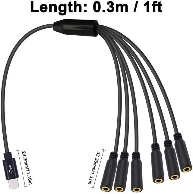 Vszerda USB C to 3.5mm Micphone Adapter, 1 to 6 Ways USB C to 3.5mm TRRS Female Headphone Audio & Mic Jack Splitter Cable Compatible with Micphone, Speaker, Galaxy, MacBook, 30cm/1ft