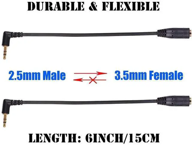 2 Pack Gold Plated 2.5mm Male to 1/8 inch (3.5mm) Female Stereo Audio Jack Adapter Cable 90 Degree Angle Connector