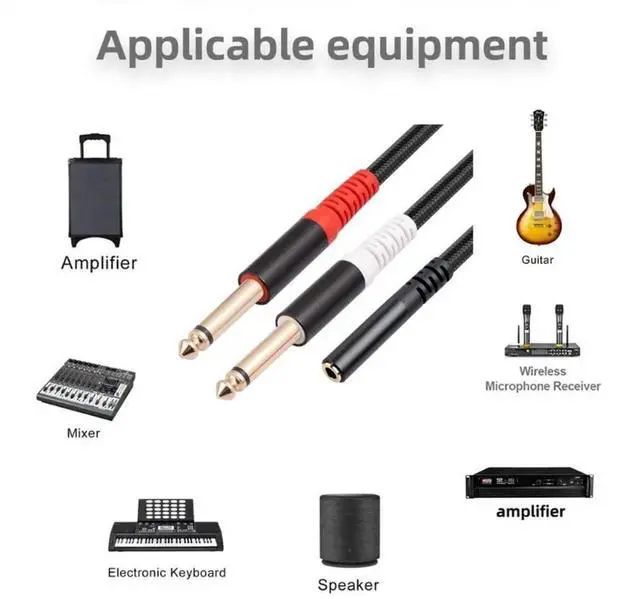 3.5 mm Female to Dual 6.35 mm Male Audio Cable Splitter Cable 6.35 1/4" Mono Jack to Stereo 1/8" 3.5 mm Jack Stereo Audio Cable