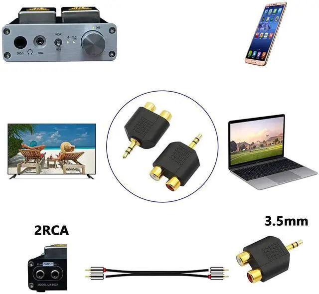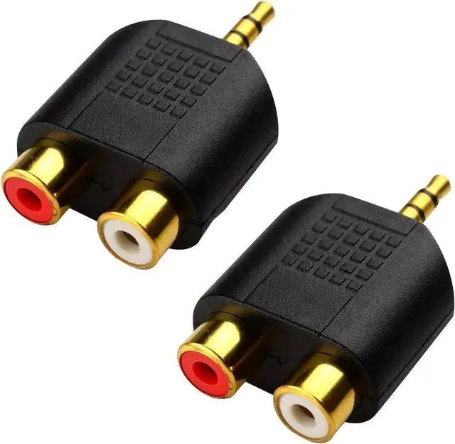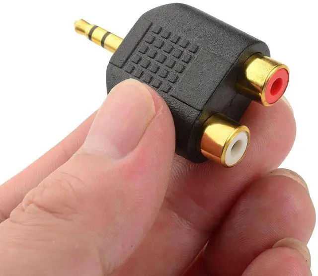 3.Stereo Male to RCA The Cable Matters Gold Plated 3.5mm Stereo to 2RCA adapter connects smartphones, MP3 players, or headphones with stereo jack to speakers or AV receivers with RCA port.