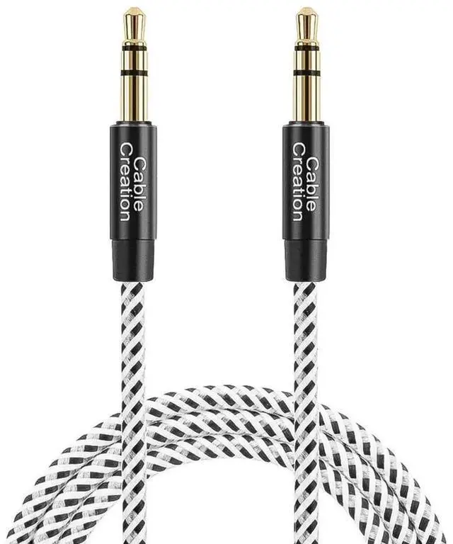 • 10000+ Bending Life: CableCreation1/8 auxiliary cable, outstanding and unique appearance, black and white cotton woven, has good resilience, no wire drawing, and it is not easy to tangle or crease.