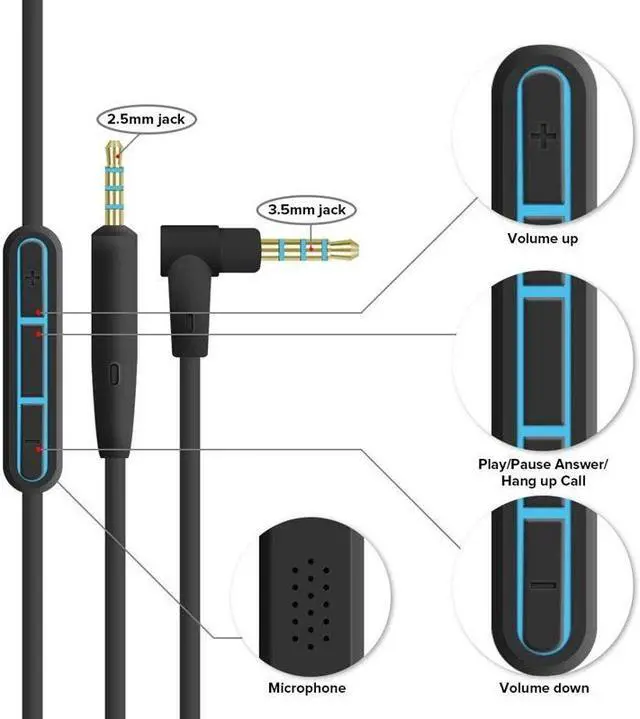 Replacement Audio cable cord wire: Compatible with Bose Quiet Comfort QC 25 QC 35 soundlink soundtrue Headphones.