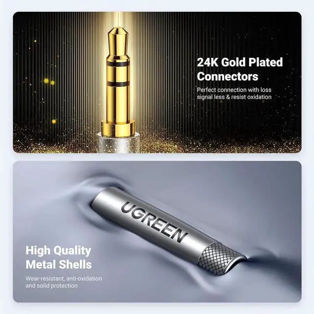 Practical Aux Cord: UGREEN 3.5mm Male to Male Cable streams Hi-Fi stereo audio directly from the aux output (line-out) devices to aux input (line-in) devices without audio converters. The 3.5mm audio cable simplifies connection and enables you to enjoy music everywhere. It is perfect for headphones of broken audio cables, and car radio without Bluetooth