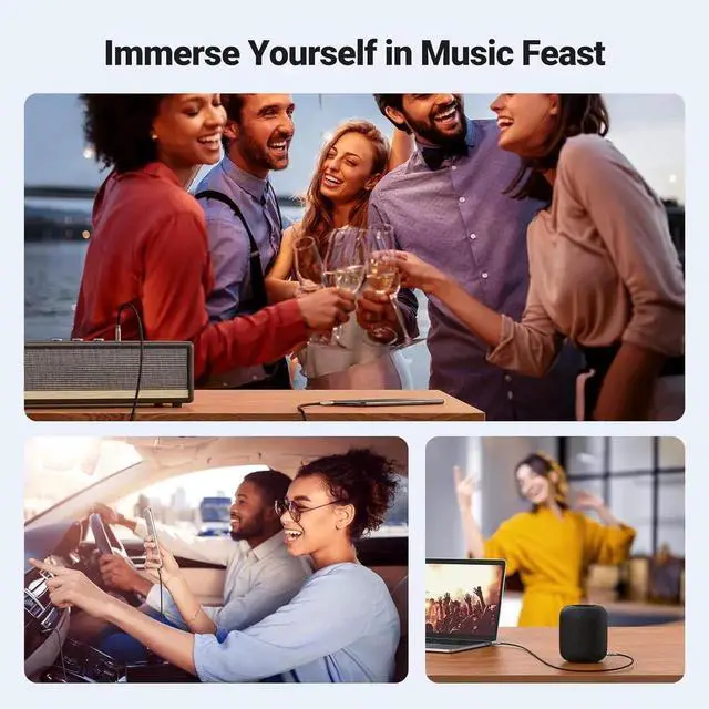 Universal Fit: The slim connector with step-down design ensures a snug fit to devices of standard auxiliary ports, like car stereo radio, TV, headphones, earphones, speakers, amplifiers, soundboxs, soundbars, laptops, tablets, steam deck, smartphones and more