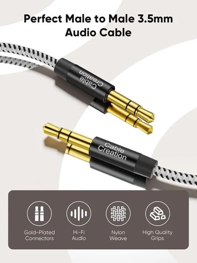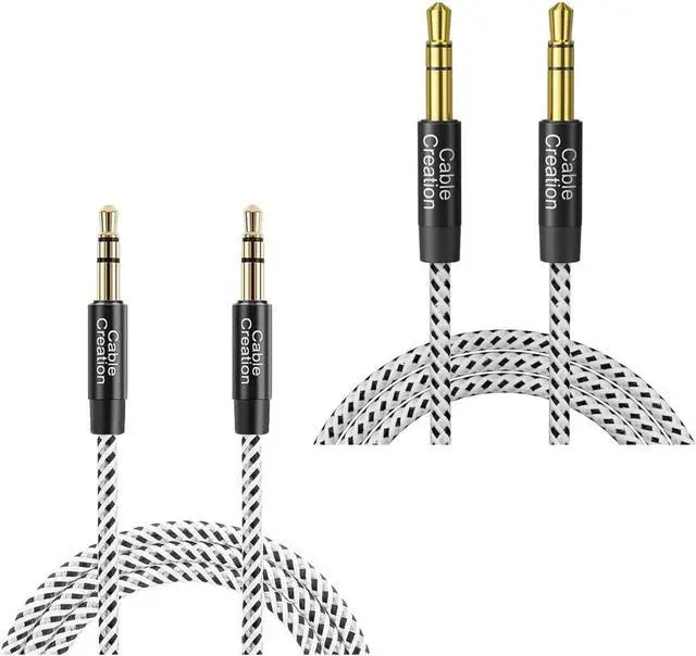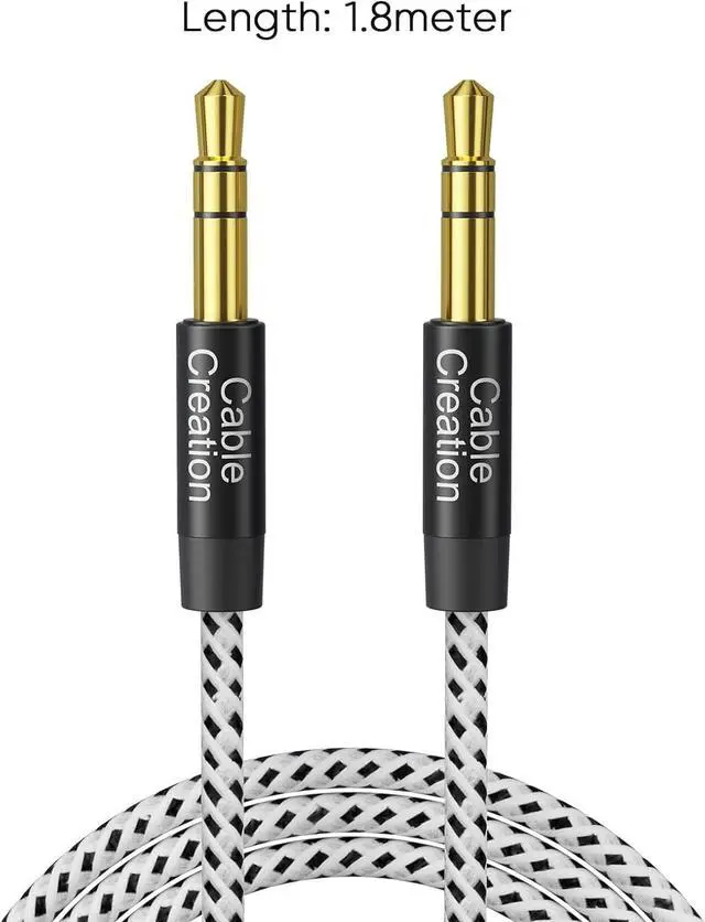 10000+ Bending Life: CableCreation1/8 auxiliary cable, outstanding and unique appearance, black and white cotton woven, has good resilience, no wire drawing, and it is not easy to tangle or crease.