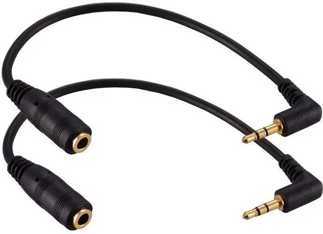 2 Pack Gold Plated 2.5mm Male to 1/8 inch (3.5mm) Female Stereo Audio Jack Adapter Cable 90 Degree Angle Connector