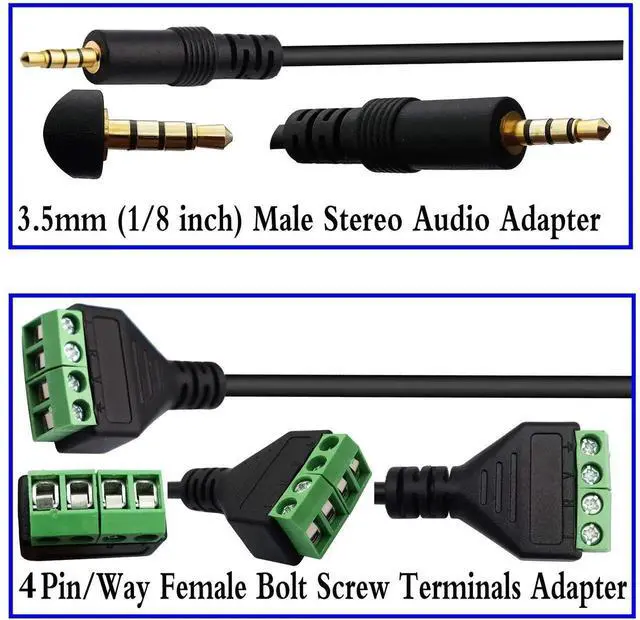 No soldering required, easy to use When a lack of time or tools prevents a standard 3.5mm Stereo TRRS Audio connection, this connector steps in to fill the void. With only a wire stripper and a screwdriver, this 3.5mm Stereo Audio to screw terminals connector cable will save time and hassle for installers