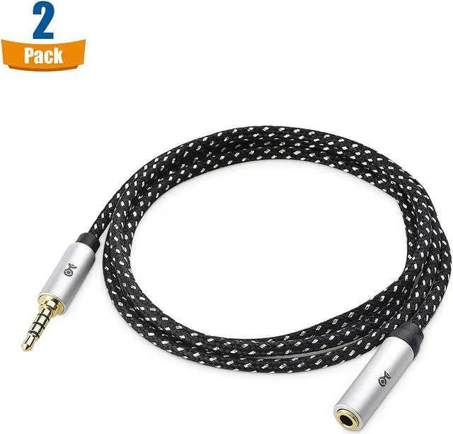 Enjoy high fidelity audio with the Cable Matters audio jack extender cable with inline Mic support; Aux extension cable is ideal for extending the length of a 3.5 mm audio connection for one-cable headsets car aux ports stereo systems and moreBoost the length of your headphones with the microphone extension cable; Headset extension Cord features a 3.5 mm male to female connector; TRRS connector on the headphone extension cable supports headphones and earbuds with built-in microphonesAudio jack extension is also ideal as an aux cord extension; Add additional cable length to your cars aux connector with this cable; Improve in-car connectivity with the audio jack extension cablePremium construction of the trrs extension cable features a braided cable jacket gold-plated connectors and bare copper conductors; Male to female headphone jack audio cord is designed for frequent useCost-effective two-pack of audio jack extension cables includes an extra cable; Use another cable on another device or keep a spare cable in the car on in a laptop bag