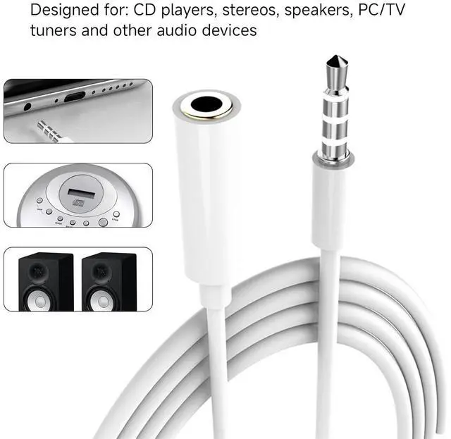 Designed for: CD players PC/TV tuners Smartphone (iPhone) earbuds tablet (iPad) MP3 player (iPod) car stereo & portable speaker Xbox 360 and other audio devices. Imported oxygen-free copper (OFC) terminals soft plastic and other materials soft lines Copper wire inside protected by aluminum foil more wear-resisting; metal shell and reversible and TPE made it corrosion resistance.