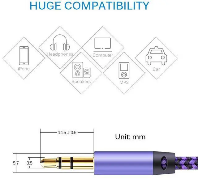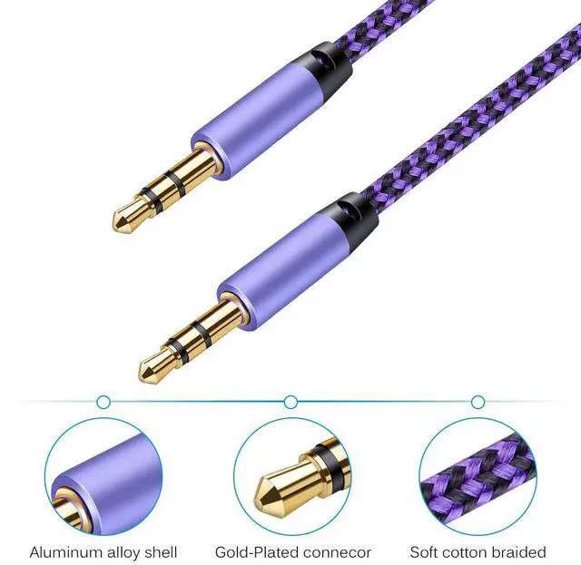 [Universal Compatibility] - Fits all 3.5 mm audio and aux ports. Play audio from any phone tablet iPod laptop MP3 players Walkman Discman or other media-playing device on your headphones Hi-Fi car stereo radios portable bluetooth speakers and wireless audio receivers. [Premium Sound Quality] - This Audio Cable built with the same grade materials as premium headphone brands. 24K gold-plated contacts ensure the cleanest sound experience possible. Gives your music a depth and balance that keep your daily soundtrack alive and it eliminate signal loss. [Incredibly Durable] - The braided exterior housing the multi-layered inner core provides resilience to the multiple bending that may occur during use.