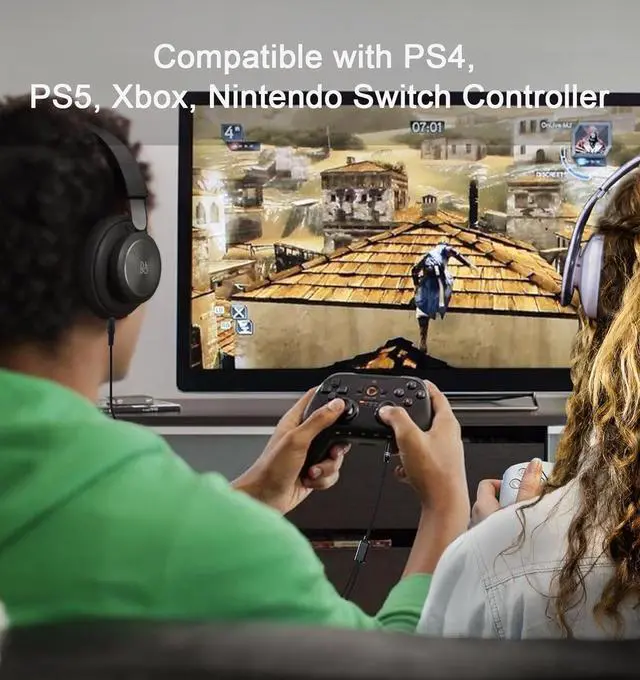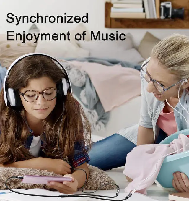 Share Auditory Delights The audio splitter converts a single 3.5 mm jack into two. This headphone splitter audio cable allows you to share your favorite music movies and games with your family and friends through just one device. Perfect Compatibility The 3.5 mm headphone jack splitter(36cm/14 inch) is compatible with PS4 PS5 Nintendo Switch PC gaming headsets tablets laptops notebooks computers smartphones (both and Android) MP3 players and other devices enabled with 3.5 mm. Unparalleled Hi-Fi Stereo Sounds This 3.5 mm splitter is constructed with a dual-shielding gold-plated connector and an oxygen copper wire core reducing susceptibility to outside signal interference and eliminating the risk of signal loss and noise and it brings users superior stereo sound in both outputs.