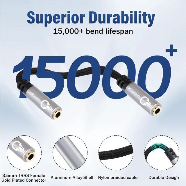 High Quality Material: This 3.5 mm 1/8 TRRS female to female mic cable adapter is made of nylon braided jacket and passed 10 000+ bending tests. 24K Gold-Plated connector is more corrosion-resistant. The ports are made of high-quality aluminum shell which has excellent wear resistance and heat dissipation.
