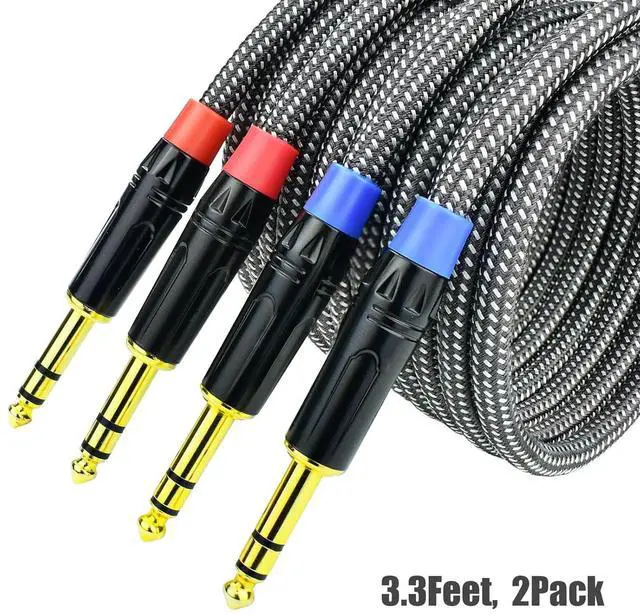 All the connectors are gold plated it can reduce signal distortion. The different color rings on the connector can help you figure out which cable is going where.? Not for Unbalanced Connection? Many customers would take this TRS cord for their guitars pedals electronic drums or many other instrument with unbalanced 1/4 jack. Indeed mostly they can work but still a small part of instrument would not work. So unless you know balanced cable can work we suggest you to take unbalanced cables.? 3.3 ft 2Pack? The package has two 1/4 inch cable inside.