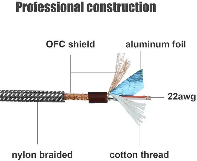 ? 1/4 TRS to 1/4 TRS Cable? This balanced 1/4 TRS patch cable is mainly used to send balanced audio signal through 1/4 Jack. It is mostly used on amps speaker system studio monitor mixer EQ recorder audio interface synth etc. Balanced cable can protect audio signal from environmental noise. It is more suitable for longer distance transmission.? Specification? This 6.35 mm quarter inch interconnect cable is nylon braided. It is thick and strong. To avoid interference noise like RFI and EMI the conductor is full covered with spiral oxygen free copper (OFC) as well as aluminum foil.