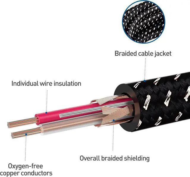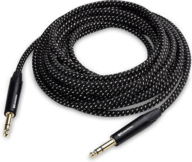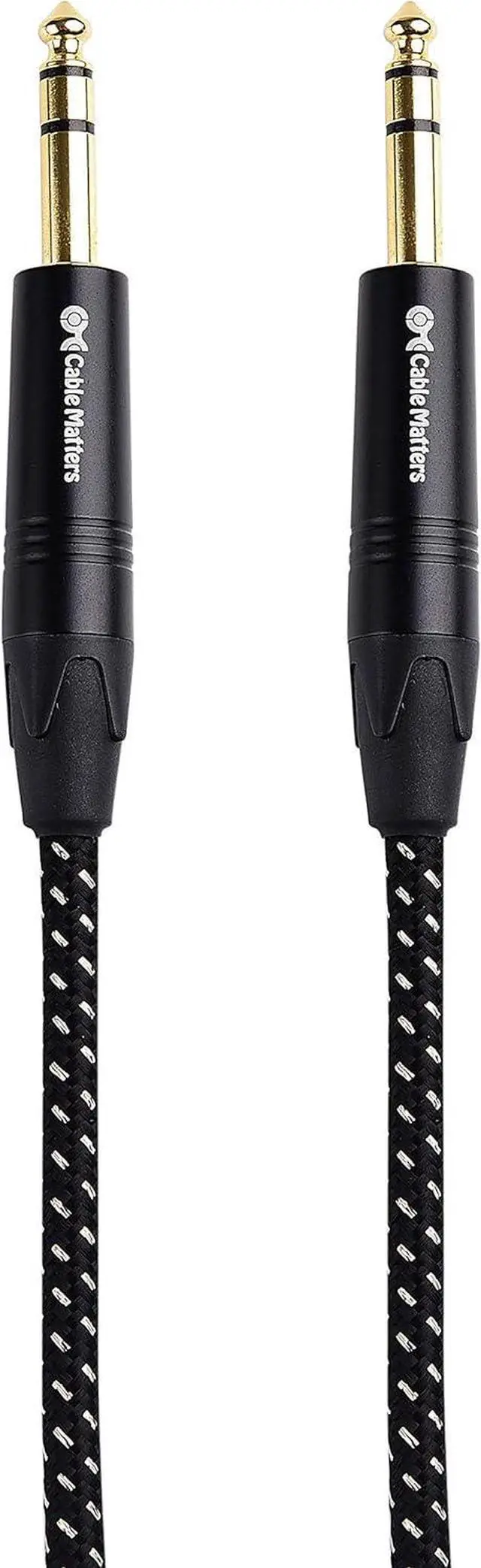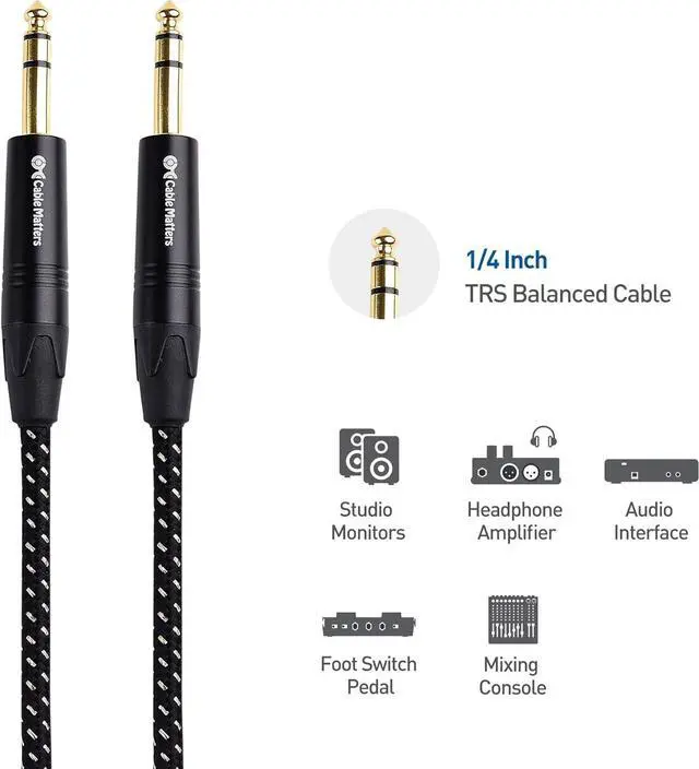 TRS balanced interconnect cable patches equipment with 1/4 inch TRS port; quarter inch cable provides a direct connection between an audio interface and a headphone ampBalanced TRS patch cable with a tangle-resistant cable jacket resists kinking and lays flat for an easy installation; Rugged metal connectors on this stereo patch cable feature gold-plated tips and an easy-grip housingSuperior construction includes oxgyen-free copper (OFC) copper conductors to deliver pristine sound; Wire insulation and overall copper braided shielding protect against EMI electromagnetic noiseBraided cable jacket on this audio snake cable provides a distinctive look in your studio; Flexible and lightweight cable jacket is easy to coil and store when not in useStereo TRS cable is compatible with musical equipment with a 1/4 TRS port such as a foot pedal switch studio monitor audio interface or headphone amplifier