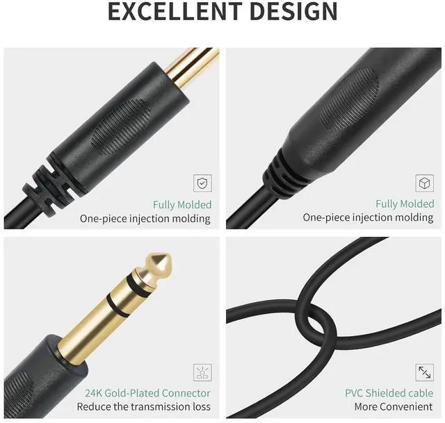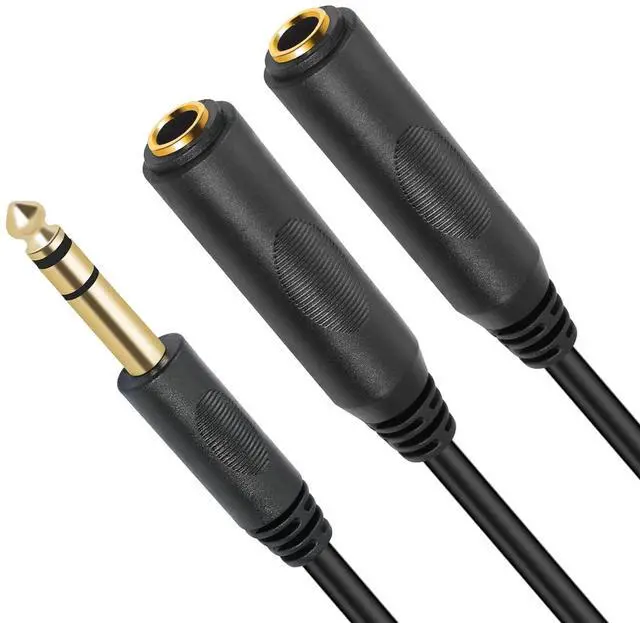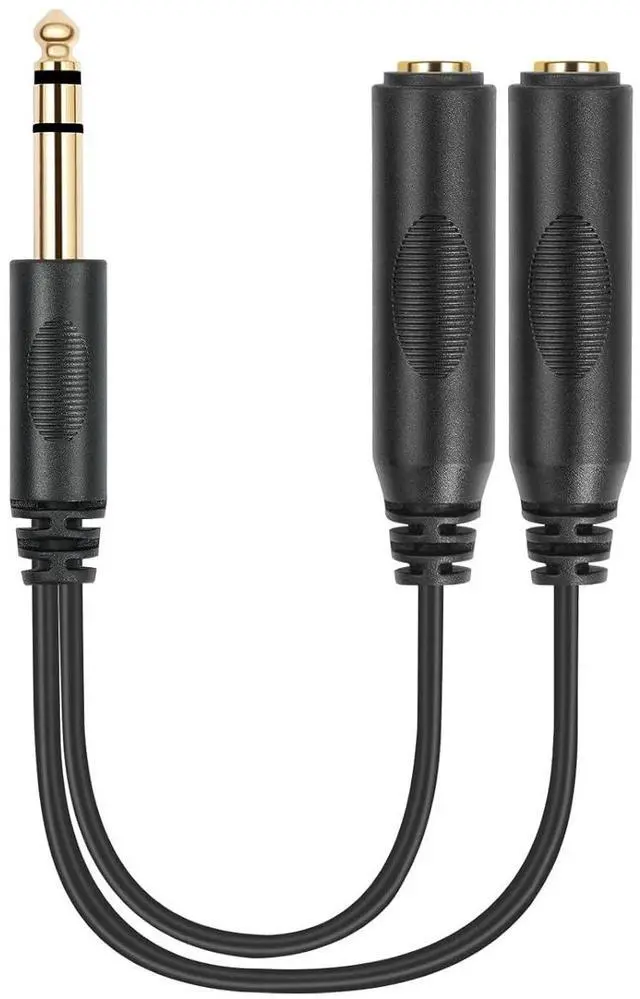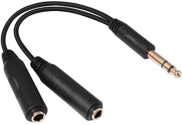 Fully molded and shielded to prevent EMI/RFI interferenceAdapt to your headset to an audio device such as an amplifier with a 6.35 mm socket or an AV receiver etc. 6.35 - 6.5 one-two two-in-one dual 6.35 mother audio one revolution two mother audio signal line 0.2MG old plated connectors resist corrosion provide durability and improve the signal transmission. This cable is designed to split one stereo into two stereo.