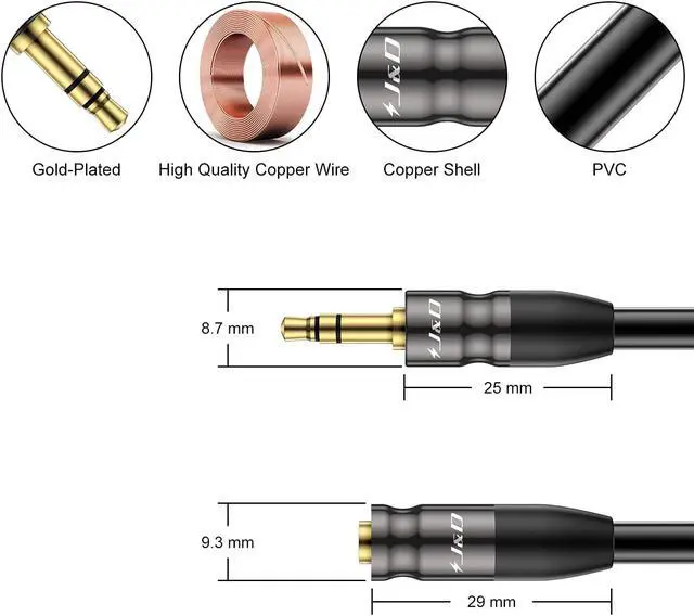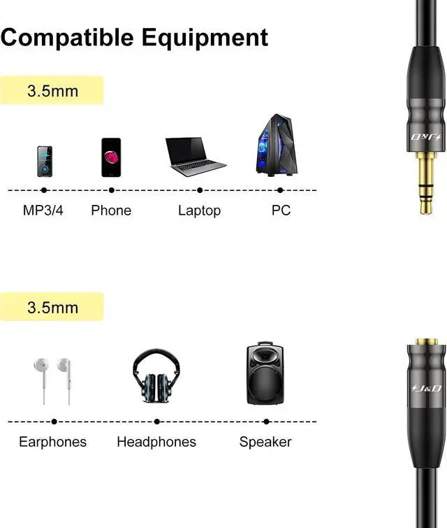 Easily connect your smartphone laptop or PC with a 3.5 mm jack output to a device with 3.5 mm jack inputs such as speakers mixing desk and so onExcellent sound; dual shielding corrosion resistant gold plated connecters making the sound signal transmits with minimal signal lossComposed with a 3.5 mm 1/8 inch Male plug and a 3.5 mm 1/8 inch Female jackCopper Shell protects the cable from harsh installation where the cable is tugged across sharp edges durable for long time useWarranty: J&D 1-Year Limited Warranty