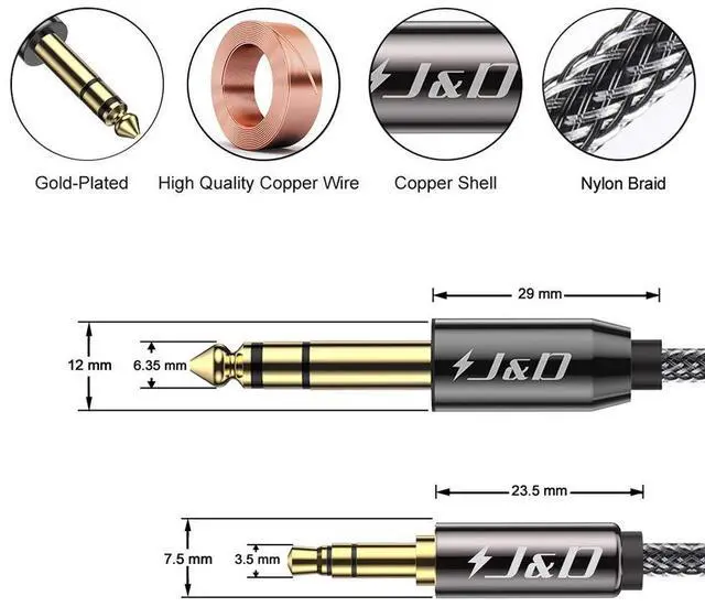 Sustainable: Featuring a durable copper shell and reinforced nylon braid for extreme protection combined with sustainable PVC materials that ensure flexible tangle-free performance while reducing environmental impactWarranty: with the J&D cable purchase customers receive a 1.5 -feet 3.5 mm to 6.35 mm stereo audio cable and a 1-year limited warranty