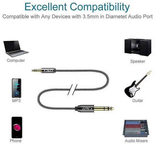 Versatile Connectivity: This 3.5 mm to 6.35 mm stereo cable connects smartphones laptops or PCs to amplifiers speakers or headphones; note: not for mixer insert jacksVersatile