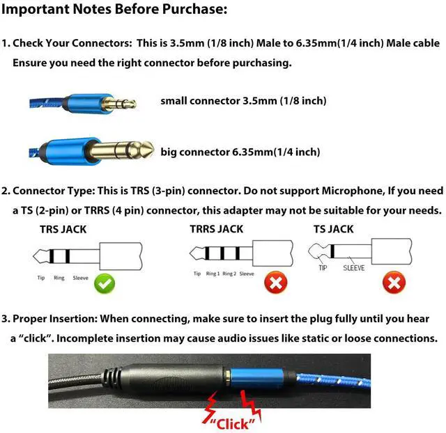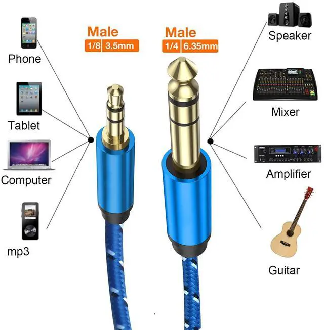 1/4 inch to 3.5mm Stereo Audio Cable 6.35mm to 3.5mm Headphone Adapter 1/4 to 1/8 Male to Male Aux Cord 3.3ft (1m) Long for Guitar Cellphone Laptop Switch Home Theater Devices