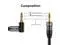 Male: 3.5 mm Male straight connector on one end and 3.5 mm Male right angled connectors on the other ends90 degree right angle audio stereo cable enables you to connect in tight spaces and hard to reach areasCompatible with any devices with standard 3.5 mm jack audio allowing you to connect 3.5 mm audio equipped device to your car speakers or home stereoCorrosion-resistant copper shell connector minimize sound signal lossWarranty: J&D 1-year limited warranty