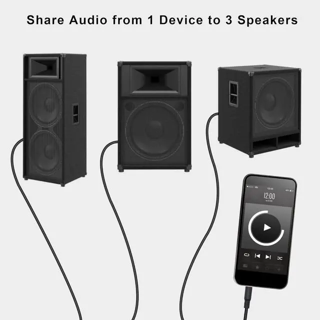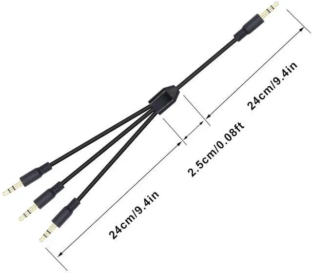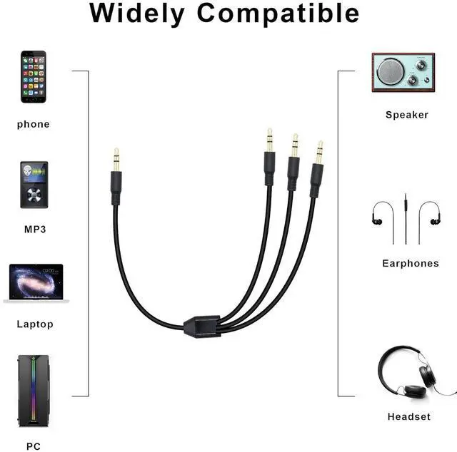 Headphone Splitter: 3.5 mm trs male to 3 3.5 mm 3-pole trs male splitter audio cable distributes audio from one device to 3 headphones/speakers. Share audio from the same source with family and friends.