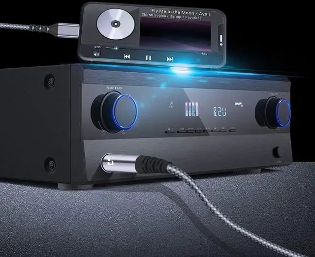 Fidelity Music: Built-in Advanced DAC Chip24bit / 96KHZ resolution: and 24K gold-plated connectors ensures better contact and the lossless sound transmission filter out 98% noise providing flawless music transmission and crystal sound quality listening experience let you enjoy an endless aftertaste music feast. that allows you to love and enjoy music This is a nice holiday gift for the family. Superior Material this auxiliary audio cable is made of silver-plated conductor and fine fabric woven material to make. It is more luxurious and stylish than nylon weave Aluminum alloy case and double layer nylon braid guards against harsh installs where the cable is tugged across sharp edges protecting it from being scrathed Aluminum alloy cases wear-resistant anti-corrosion easily survive daily heavy usage. Enjoy Excellent and