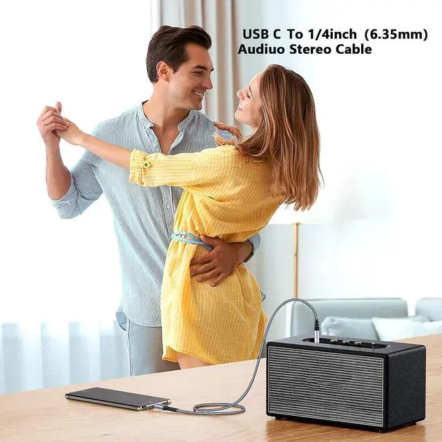 4. The product only supports speakers/amplifiers/DVDs with 1/4 inch ports. Please confirm that your device has a 1/4 inch audio input port before purchasingUSB C to 1/4 inch Audio Stereo CableJust connecting a smartphone tablet or laptops with USB-C port output interface of the audio signal to home Hi-Fi system car stereo radio sound-bar speaker mixer amplifier or other 1/4 inch TRS equipped device. can play music. It is the best choice for driving family gatherings office meetings etc.