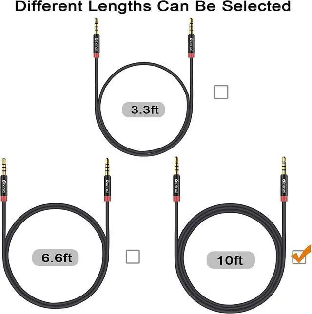 Step-down design makes it possible to work without removing your phone/tablet case. HiFi sound quality Maintaining audio level. Passes test and detection for each single product (Tests including but not limited: Stereo Left/Right Channel Microphone Signal Level Short-Circuit). What you get Devinal 10 Ft 3.5 mm Nylon Braided Aux Cable (2 Pack) Lifetime Customer Support 7*24 customer service. Any question please contact us we will fix your issue within 24 hours.