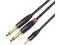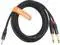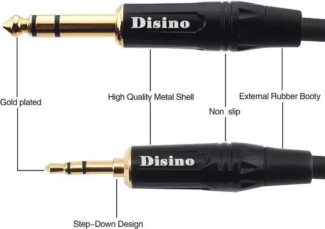 Disino 3.5 mm trs to dual 1/4 ts cable this cable is designed to connecting your smartphone portable media player laptop/PC or similar device with a 3.5 mm mini jack output to a device with 2 x 6.35 mm jack inputs such as speakers mixing console and so on. This cable can be used to split an 3.5 mm unbalanced stereo signal into two 1/4 TS(left/right) unbalanced mono signals or to combine two 1/4 mono signals(left/right) into a single 3.5 mm stereo signal. It splits closer to the 1/4 TS ends the distance to the split point is about 7.5 inches.