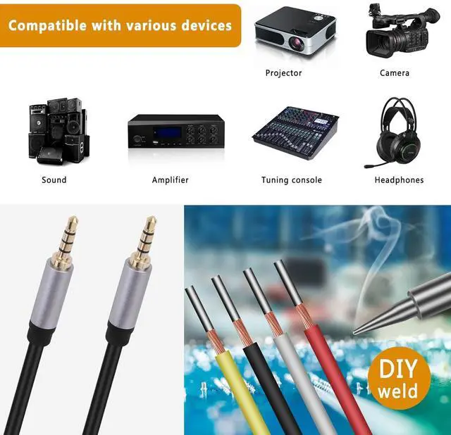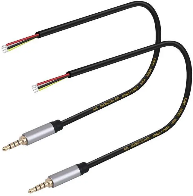 3.5 mm stereo 4 pole male plug to bare wire replacement audio cable. Perfect replacement 3.5 mm male plug connector to bare wire audio cable for worn-out or broken headphone headset earphone microphone speakers cable repair.